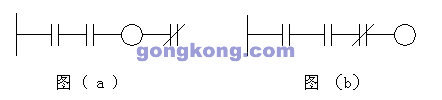 2、 梯形图每一行都是从左边开始,线圈接在最右边(线圈右边不允许再有接触点),如图(a)错,图(b)正确。